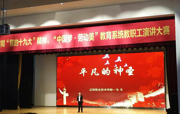 近日,为深入学习贯彻党的十九大精神,辽阳市教育局举办“中国梦 劳动美”教育系统教职工演讲比赛,来自教育局直属学校的26位优秀教师参加了比赛,马冬老师由我院选送参加了此项比赛。经过4月11日预赛的激烈角逐,8名选手进入决赛。决赛于4月13日下午在市一高中进行,马冬老师凭借用心制作的背景音乐与幻灯情景设计,用声情并茂的演绎感动全场,最终夺冠。他精彩的演讲展现了我院教师爱岗敬业、无私奉献,争做雷锋式职业人的精神风貌!