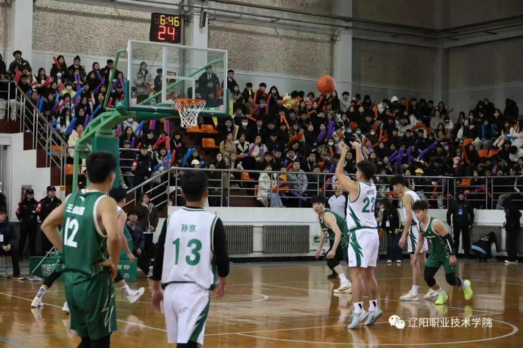 比赛当天,体育馆内座无虚席,全校师生的热情将现场氛围推向高潮。赛场上,两支队伍的球员们迅速进入状态,展开激烈角逐。快速的攻防转换、默契的传切配合、顽强的篮板拼抢,每一个精彩瞬间都赢得观众的阵阵喝彩。辽阳职业技术学院男篮的队员们带着主场师生的期许全力拼搏,用扎实的球技与坚韧的毅力诠释着体育精神;辽宁机电职业技术学院男篮的队员们同样展现出强劲实力,双方你来我往、比分交替上升,为全场观众奉献了一场精彩绝伦的篮球盛宴。
