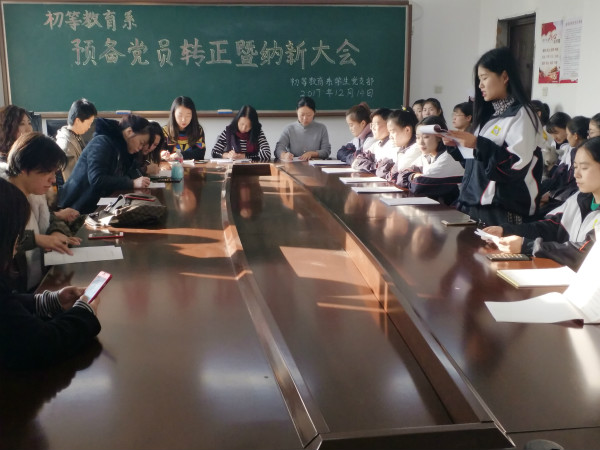 12月14日下午,初等教育系党总支学生党支部在系会议室隆重召开预备党员转正暨接收预备党员大会。部分教师党员与全体预备党员、党员发展对象参与了此次会议。大会议由系团总支书记田美晶主持。